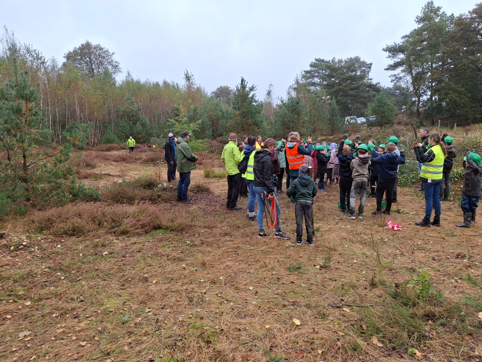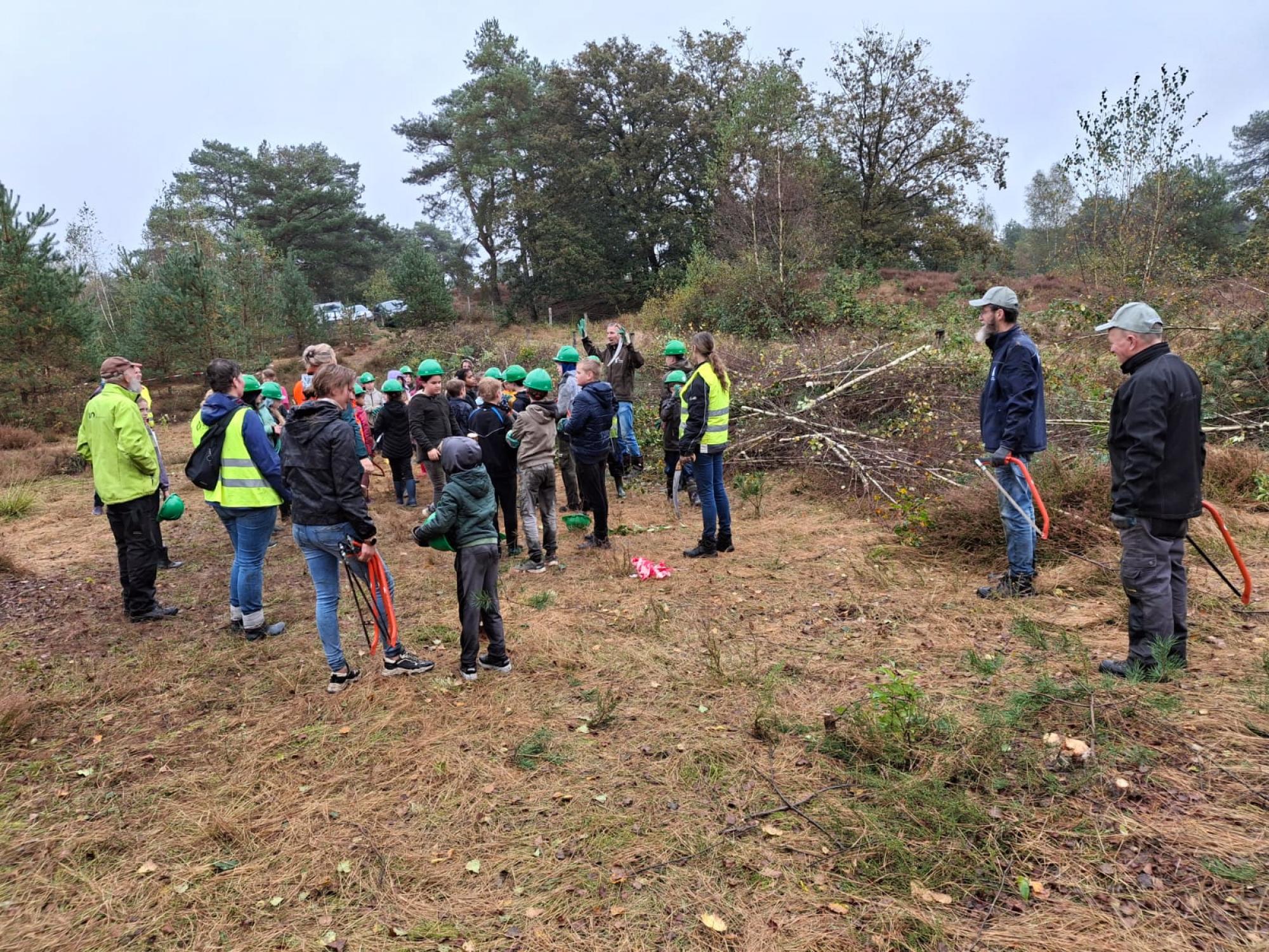 Ondanks dat het een beetje regende hadden de ruim 100 kinderen van basisschool De Schakel in Broekhuizen er zin in. Zin om samen een begroeid heideveld aan de Parallelweg in Broekhuizen te ontdoen van kleine boompjes en struiken. Dit deden zij samen met mensen van Limburgs landschap, Landschap Horst aan de Maas en verschillende ouders.