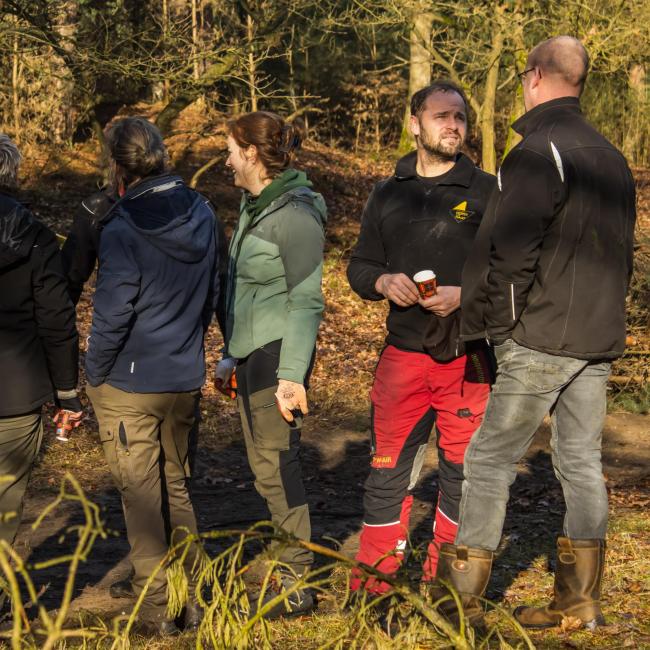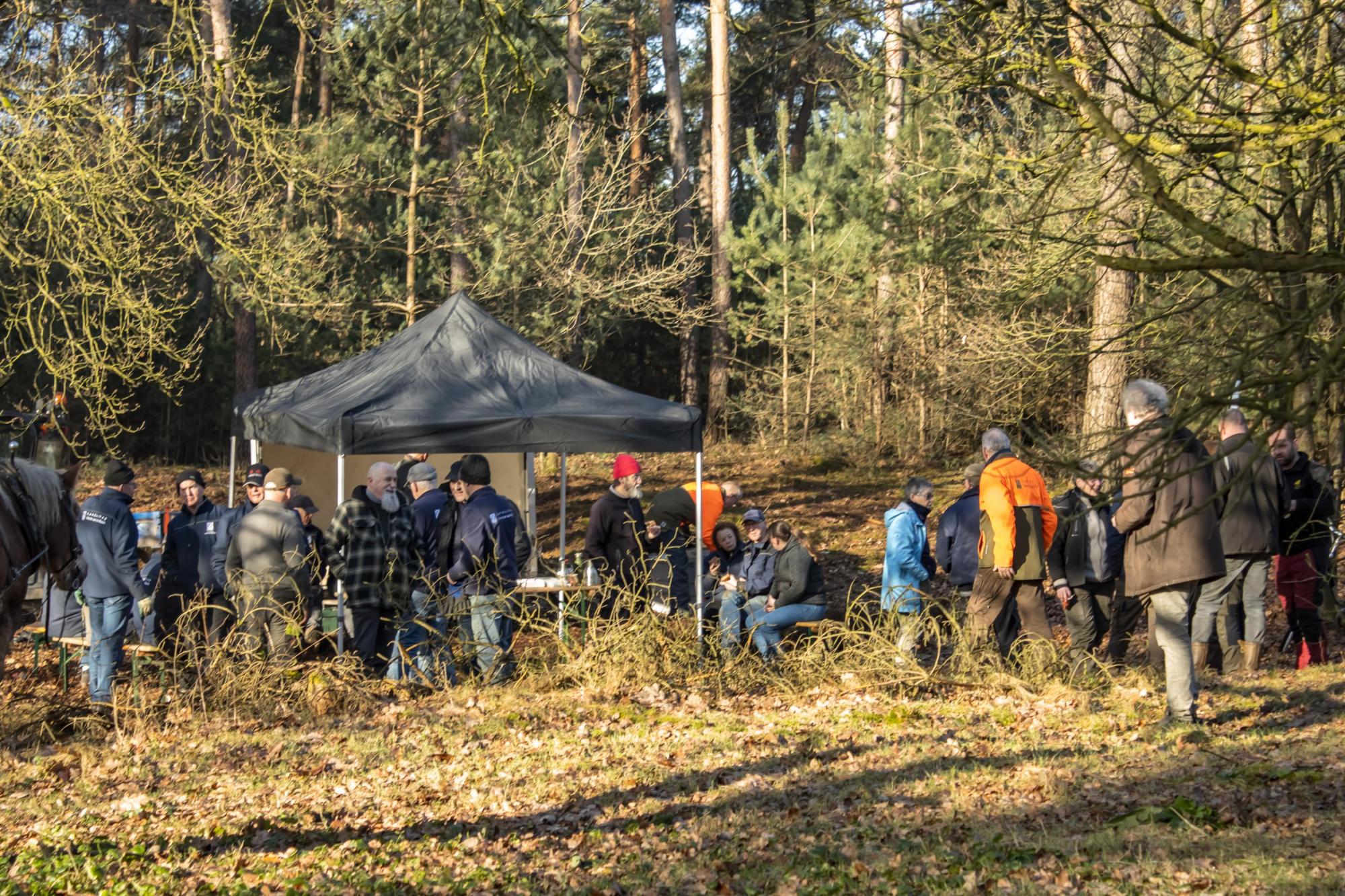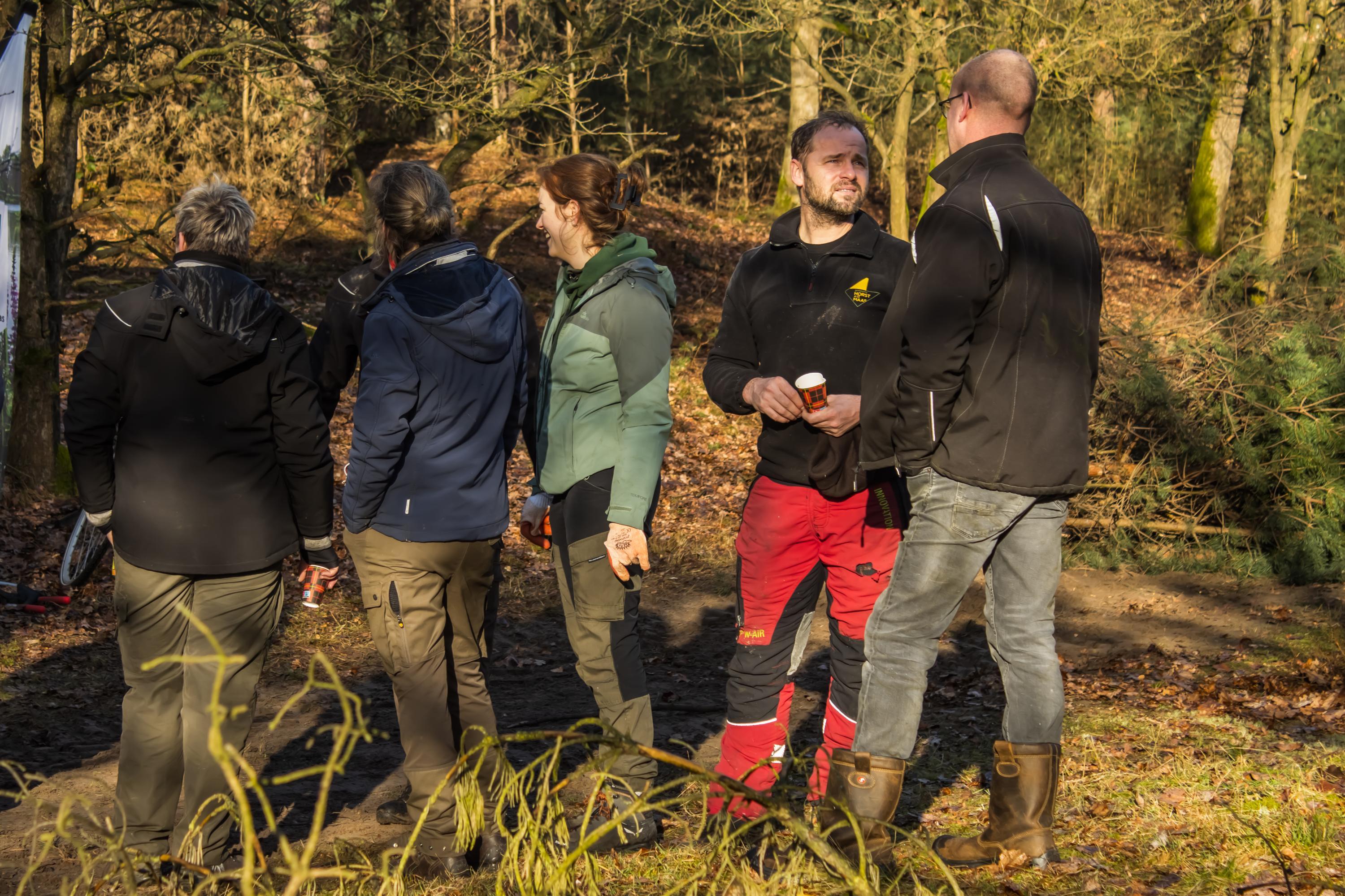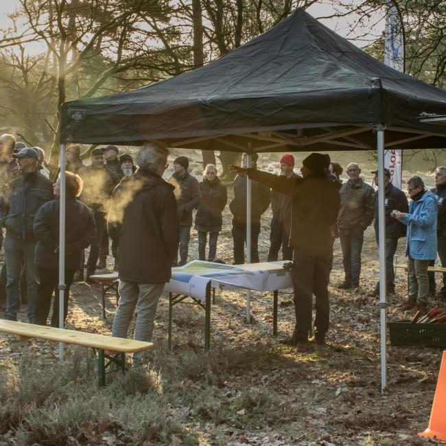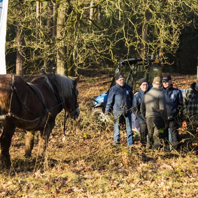 Het was een fantastische werkdag op de Swolgenderheide. Onder de eerste zonnestralen eerst uitleg over de bijzondere kenmerken van het boom-heidegebied en de uit te voeren werkzaamheden. Daarna met zijn allen aan de slag, knippen, zagen en met handkracht de dennen uit het kwetsbare gebied slepen. Voor de zwaardere bomen was er gelukkig de hulp van het trekpaard. Na afloop nog ff napraten en aan de vlaai met de blik al weer op de volgende natuurwerkdag.